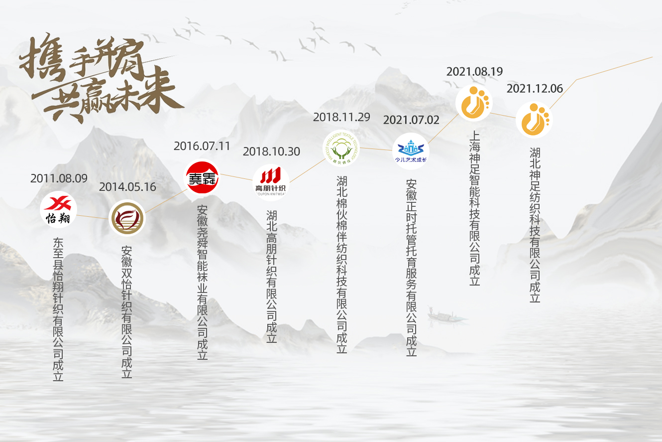 安徽尊龙时凯智能科技集团有限公司是一家集研发、、生产、、销售及进出口贸易于一体的大型袜类综合性企业。。。坐落于院南尊龙时凯之乡、、、、周馥故里一一安徽省池州市东至县。。。生产基地分布在安徽、、、湖北、、上海、、、浙江三省一市。。。拥有标准化厂房20.8万平方米,,,引进意大利罗纳蒂编织缝头一体机1000台(套),,国产电脑数控平板袜机3200台(套)。。。。生产员工总数超3500人,,,日产量超130万双;设计年生产规模10亿元人民币。。。公司主要生产经营各类棉袜的品种有:运动袜、、、、休闲袜、、长袜、、、、短袜、、、、毛圈袜、、童袜等。。。。公司通过IS09001质量、、、IS014001环境、、、SO45001职业健康安全管理体系及BSCI、、Sedex、、、Higg lndex、、WRAP等多项国际认证。。。产品远销欧美30个国家和地区。。。。“怡翔”商标为中国驰名商标。。。。